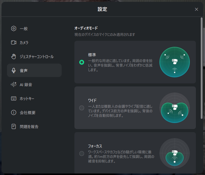 | ノイズ低減 | AIノイズキャンセリング |