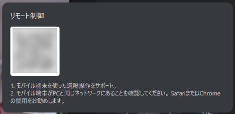 表示されるQRコードを読み込むことで、スマホのブラウザ上で「Insta360 Link 2 Pro」をコントロールできます。
