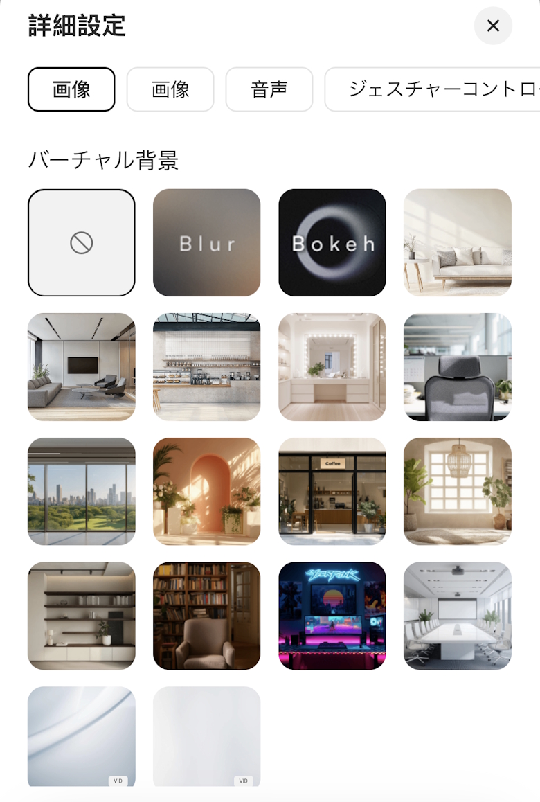 バーチャル背景を豊富なバリエーションから選択できます。