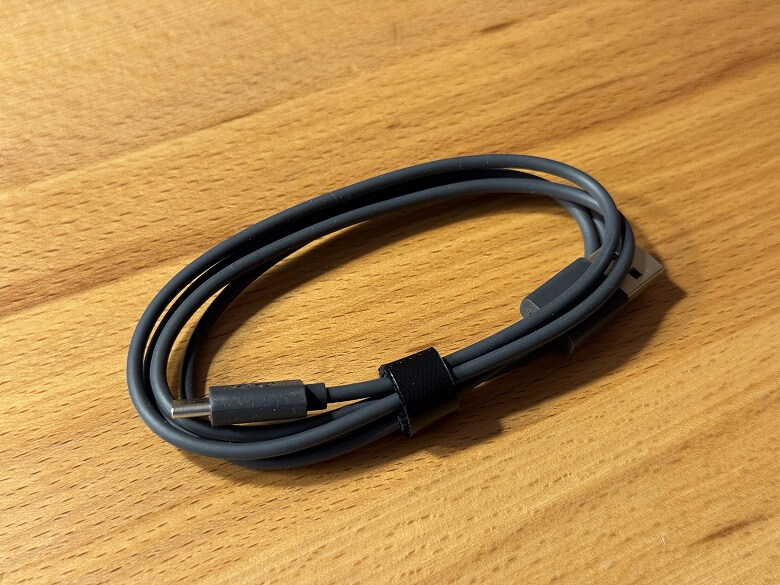 付属の充電用のUSB Type-A to Cケーブルの長さは約130 cm。