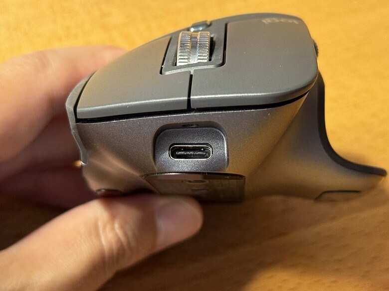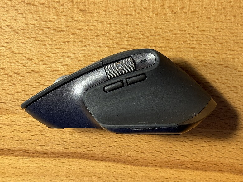 「Logicool MX Master 3S」の外装は無駄が一切なくシンプルで、流線型のデザインがカッコ良くさわり心地の良いラバーに包まれています。