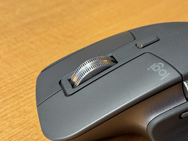 マウスの上部には基本の左右ボタン、その間にあるのはMagSpeed電磁気スクロールホイール。