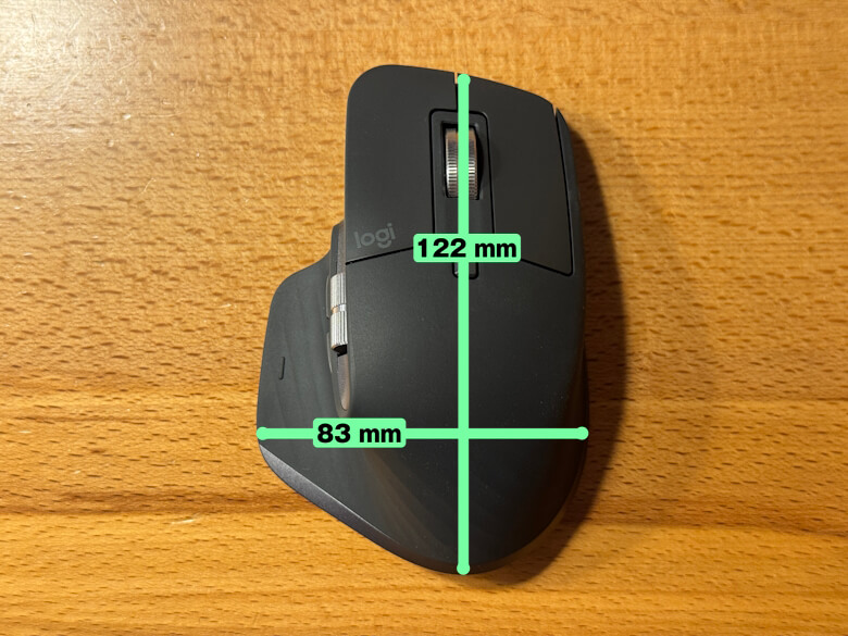 「Logicool MX Master 3S」のサイズは122 × 83 mmです。