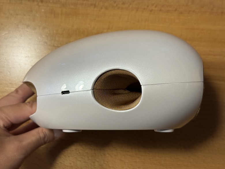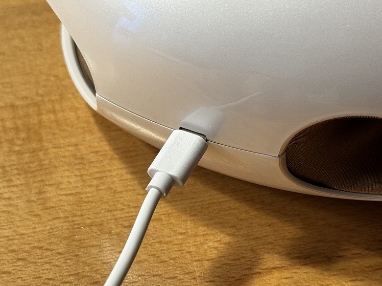 側面にあるUSB Type-Cポートに付属のUSB Type-A to Cケーブルを電源と接続し、充電します。