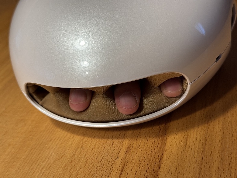 両手を包み込むように圧力をかけ、じんわり温めながら揉みほぐしてくれるこの製品。