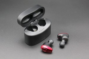 充電ケースからイヤホンを取り出すとこんな感じ。