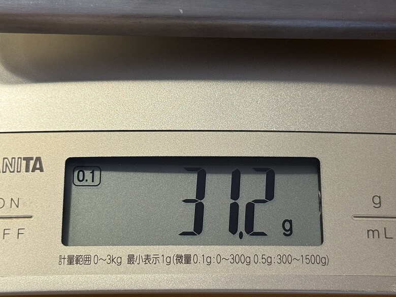 重さは31.2 gでした。
