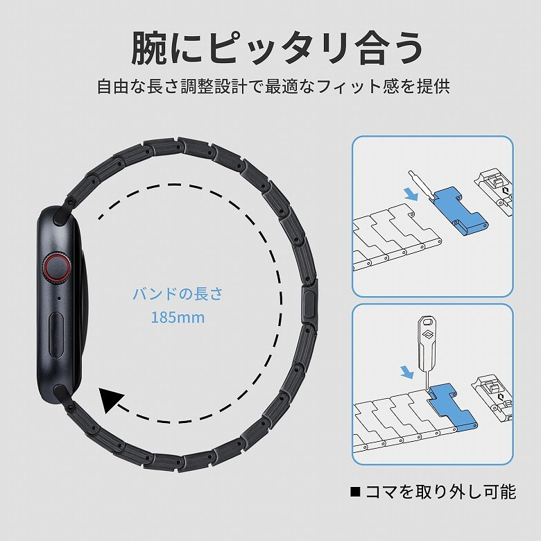 コマの量を増減させ、腕にピッタリ合う長さに調整できます。
