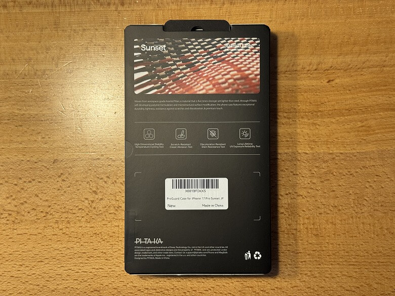 PITAKA Ultra-Slim Case」と「PITAKA Aramid ProGuard Case」の外箱は、全面に製品の写真がプリントされたわかりやすいデザインです。