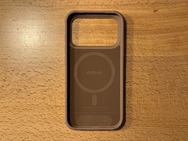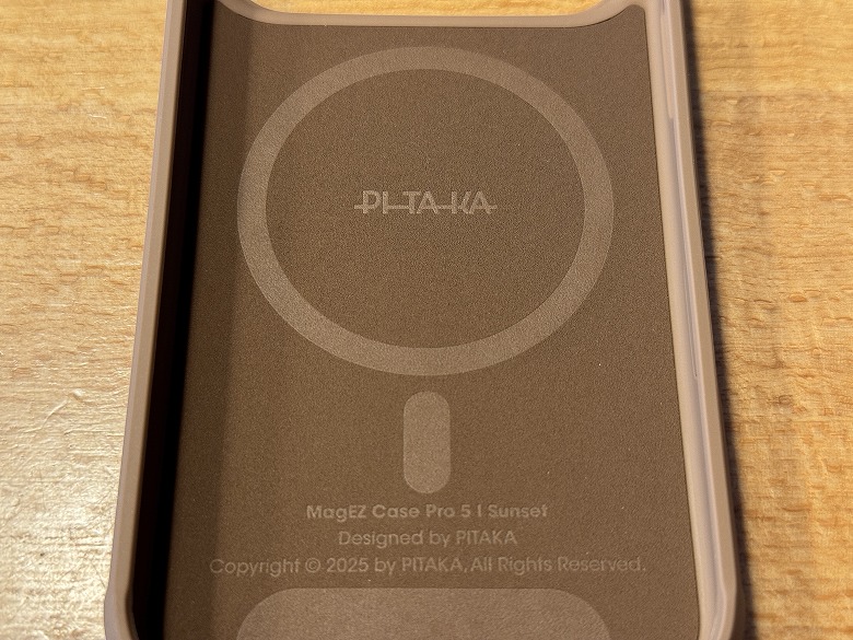 内側には丸いマークとMagSafe対応であることがプリントされています。