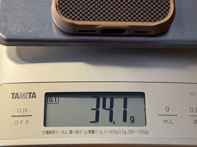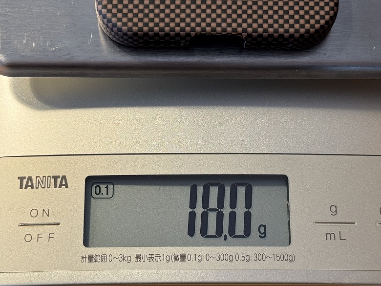 重さは「PITAKA Ultra-Slim Case」が18.4 g、「PITAKA Aramid ProGuard Case」が34.9 gでした。