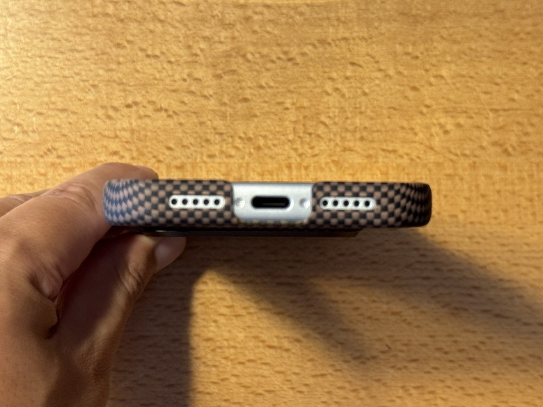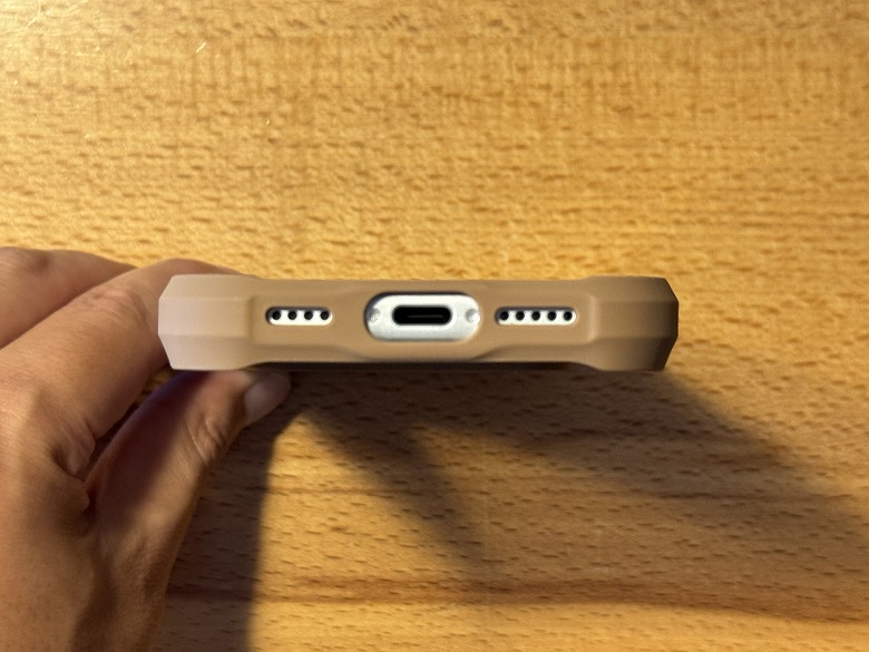 スピーカーやUSB Type-Cポートも塞ぐことなく、穴がジャストフィットしています。