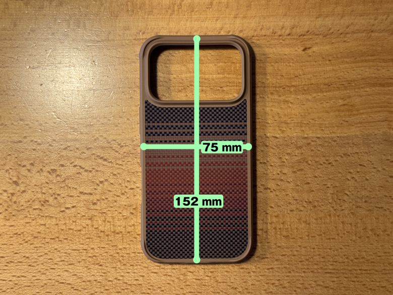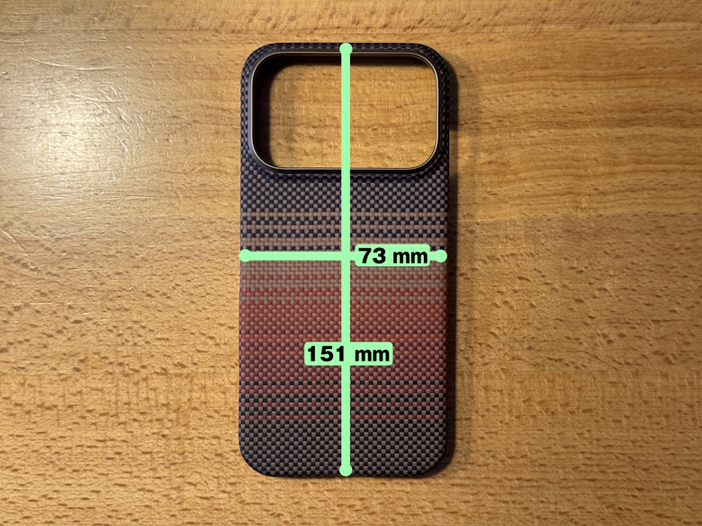 PITAKA Ultra-Slim Case」のサイズは151 × 73 mm、「PITAKA Aramid ProGuard Case」のサイズは152 × 75 mmです。