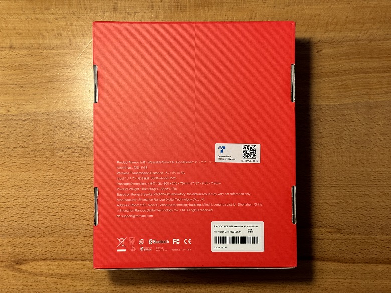 「RANVOO AICE LITE」の外箱は、鮮やかな赤基調で目に付くデザインです。