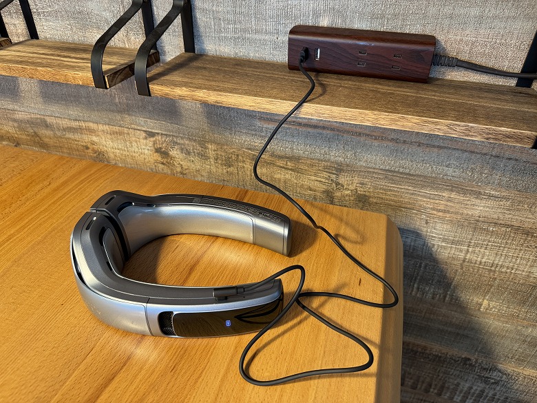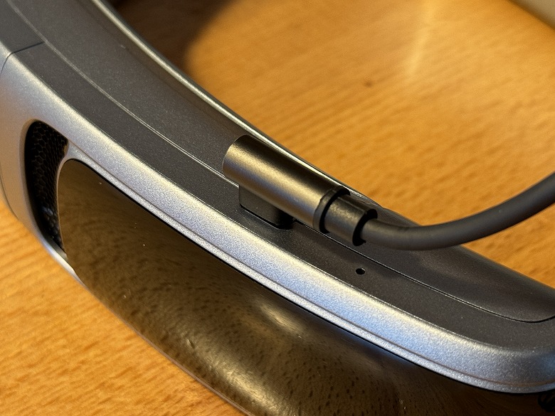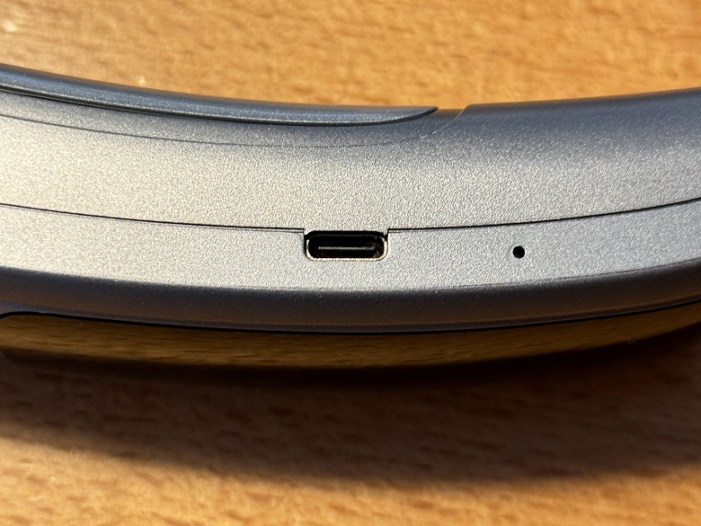 左側には充電用のUSB Type-Cポートがあり、付属のUSBケーブルを接続して充電できます。