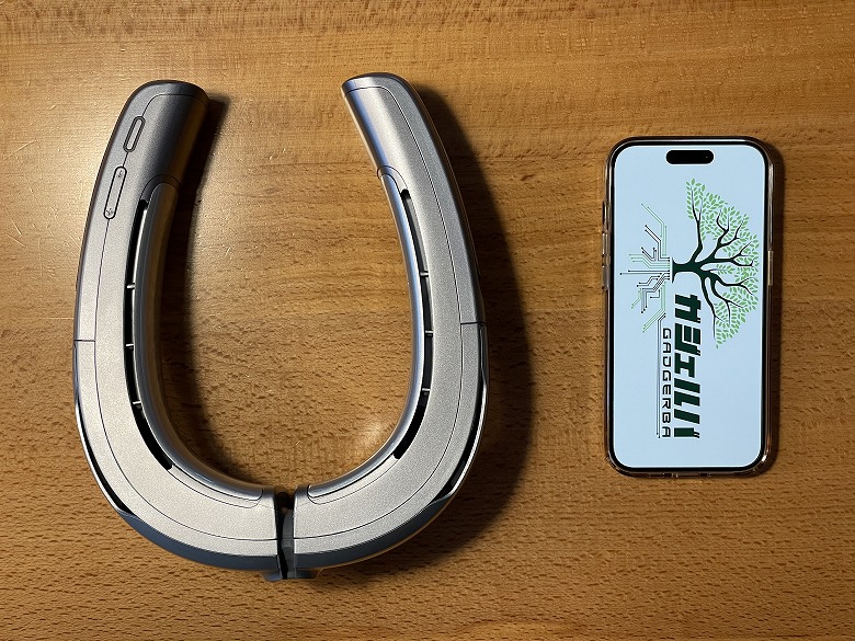 スマホ(iPhone 15 Pro)と比較するとこんな感じのサイズ感。