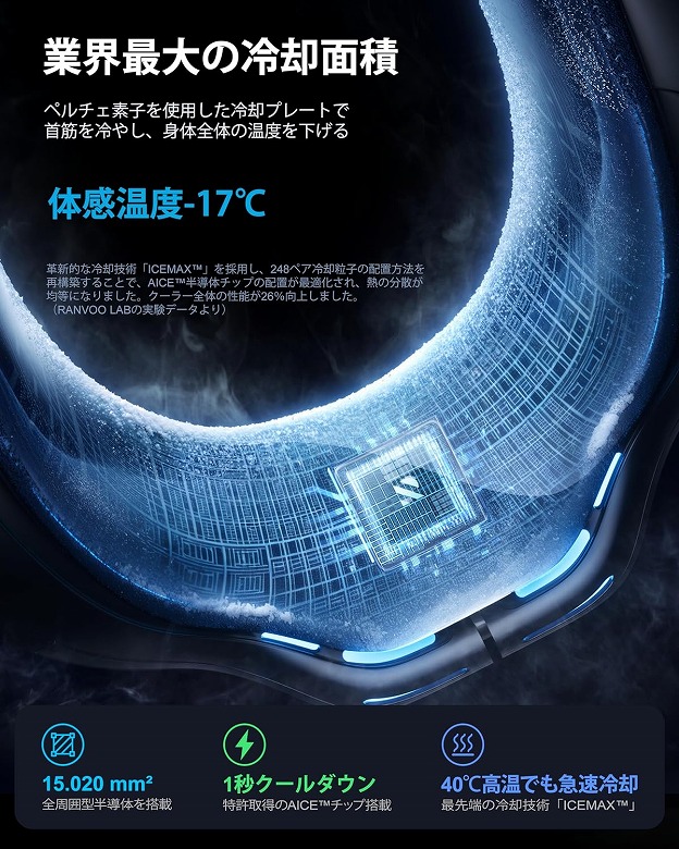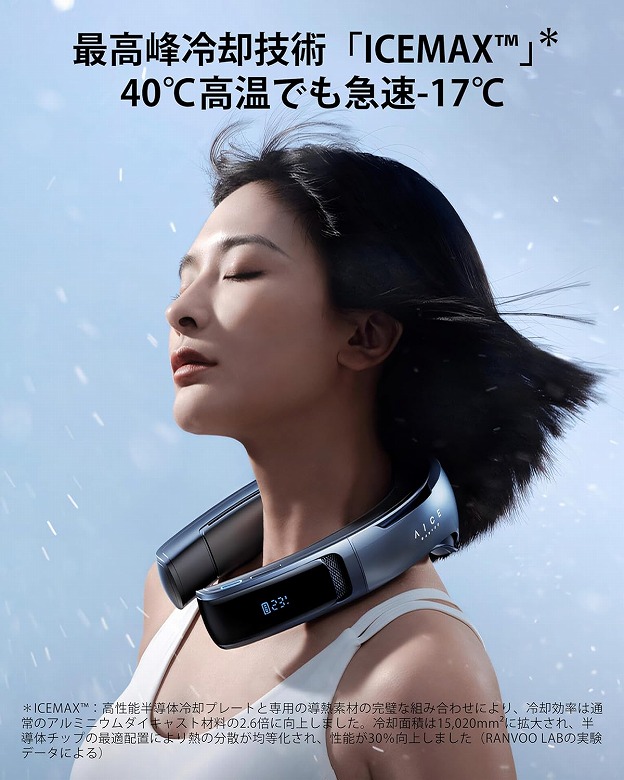 RANVOOの「AICE LITE」は、首元から全身まで一気に冷やしてくれるスマートネッククーラーです。