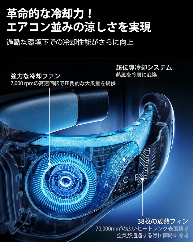 強力な冷却ファンでエアコン並みの涼しさを実現しています。