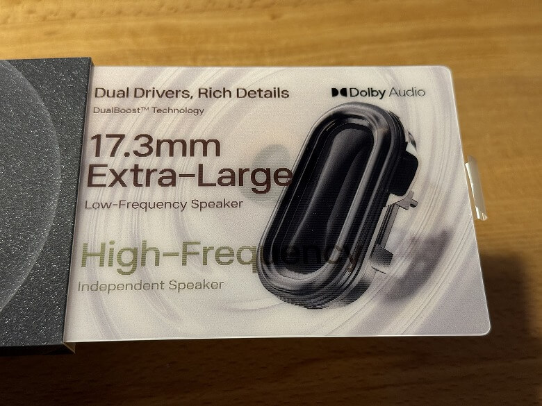 TECH CARDの中には、Dolby Audioやシリコン素材に関する情報と説明が記載されてます。