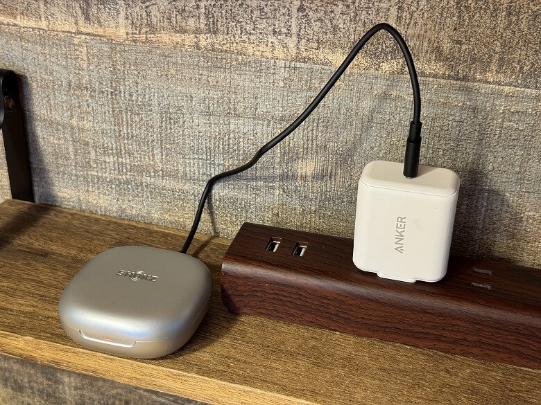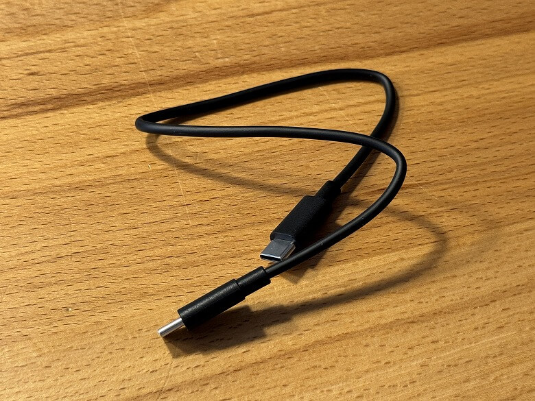 黒いUSB Type-Cケーブルは充電ケースを充電するために使います。