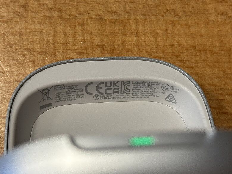 | 電池容量 | イヤホン:56mAh (Min) 充電ケース:600mAh (Min) |