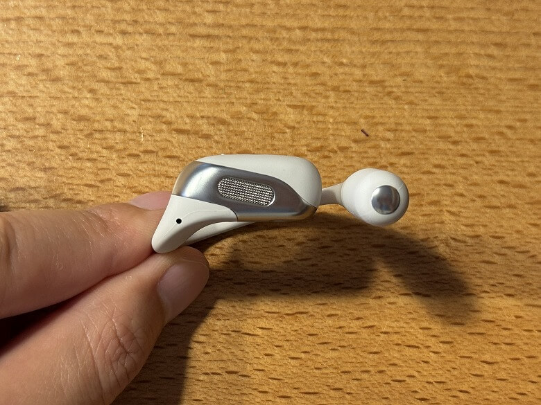 充電ケースからイヤホンを取り外すとこのような感じ。
