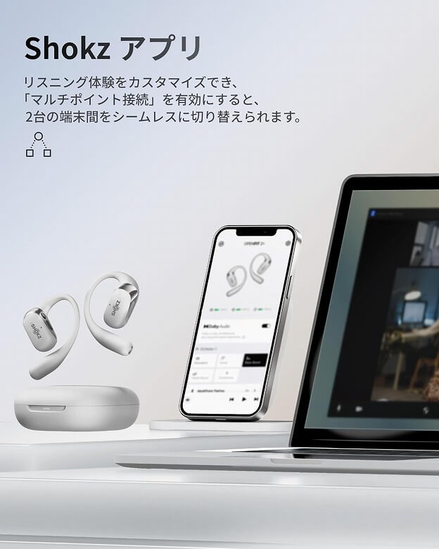 Shokzの「OpenFit 2+」は耳をふさがず快適に音楽と通話を楽しめる、進化したオープンイヤー型イヤホンです。