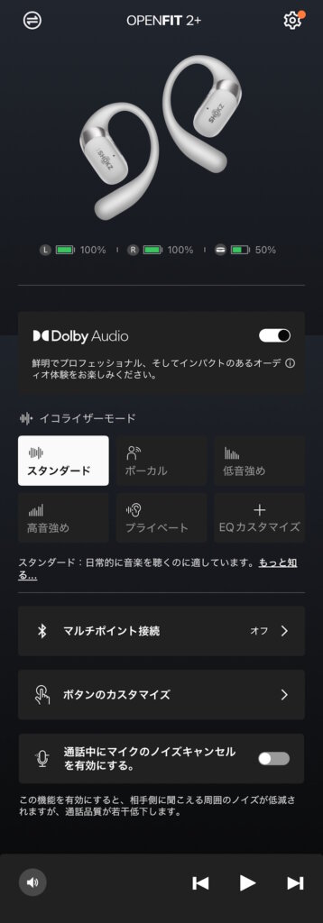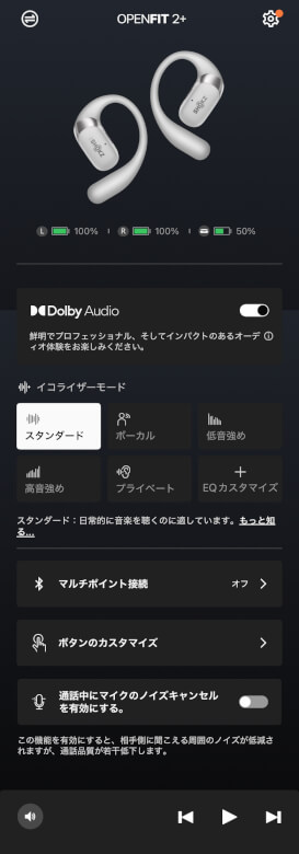 専用のスマホアプリ「Shokz」で様々なカスタマイズが可能です。
