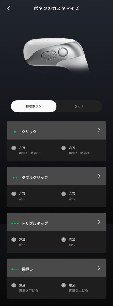 物理ボタンやタッチでの各種操作をカスタマイズできます。