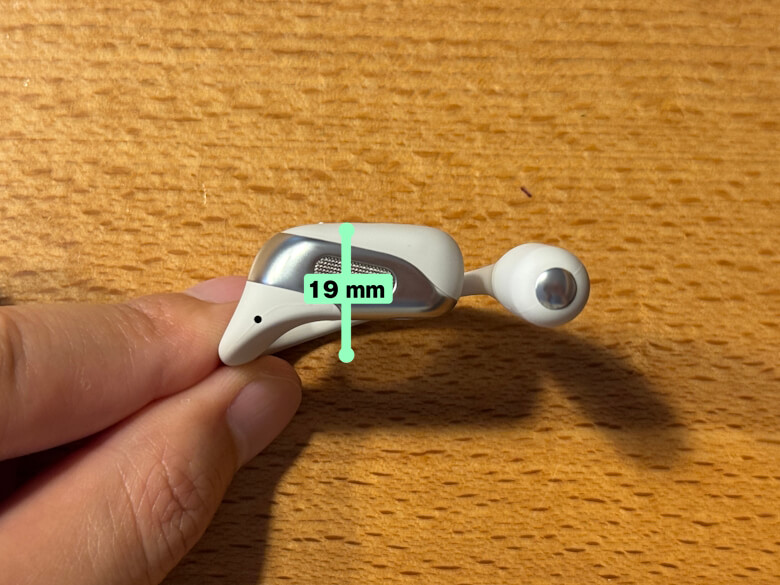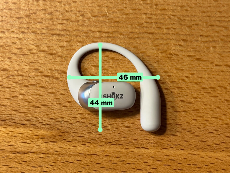イヤホンのサイズは44 × 46 × 19 mmでした。