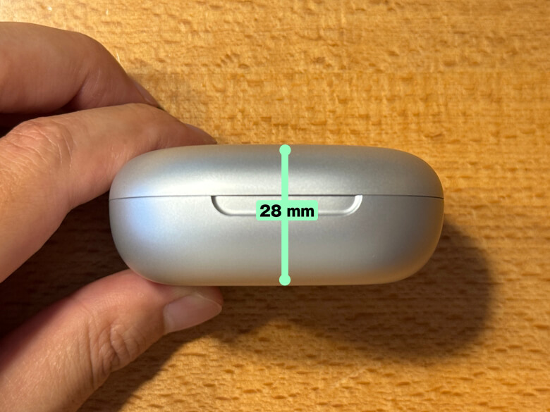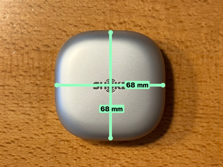 「Shokz OpenFit 2+」の充電ケースのサイズは68 × 68 mmです。