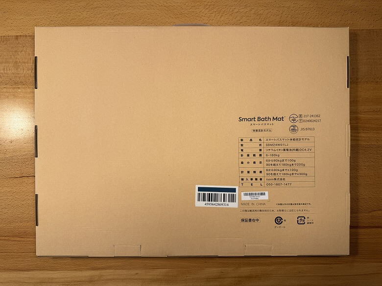 「Smart Bath Mat」の外箱はダンボール素材でシンプルです。