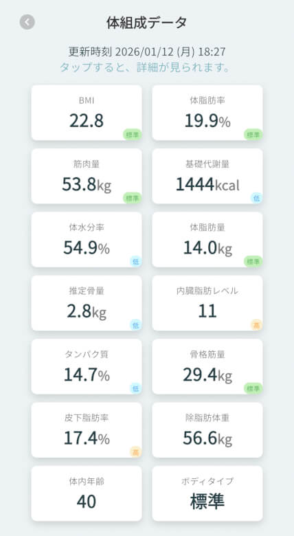 体組成データの詳細を確認できます。