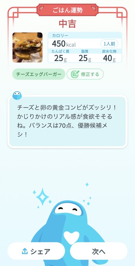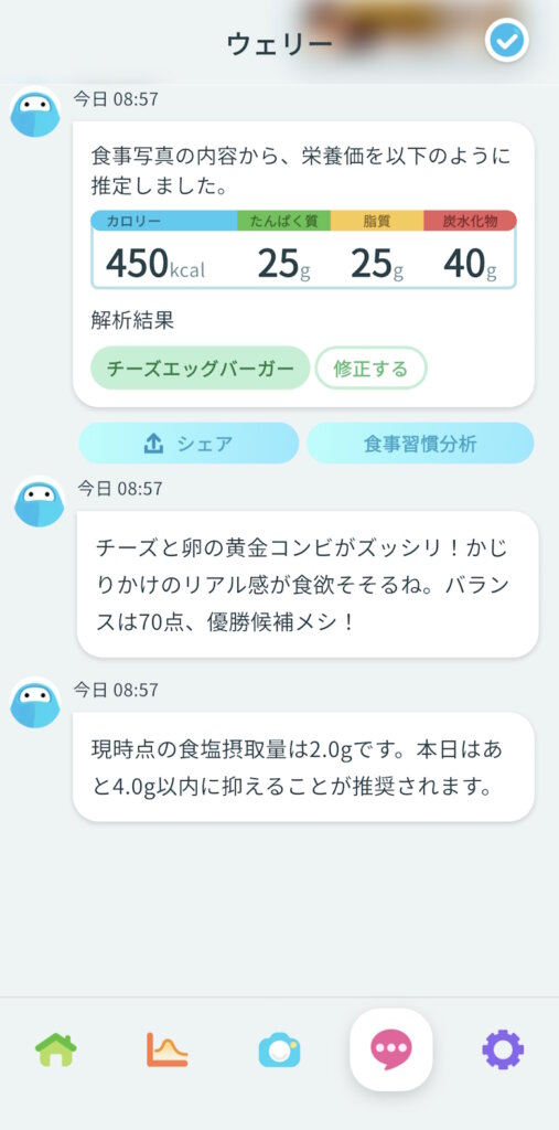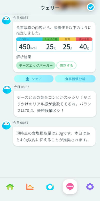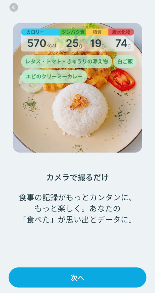 食べたものの写真を撮るだけでAIが判定し、自動的に記録してくれます。