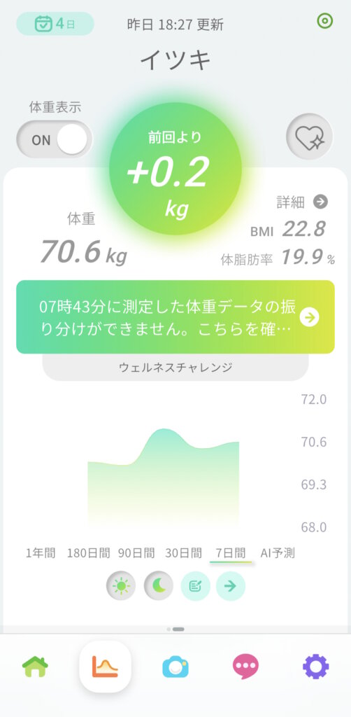 これまでは体重計に乗るたび、前日より増えているか減っているかだけで一喜一憂してしまい、少し増えただけで気分が落ちることも少なくありませんでした。