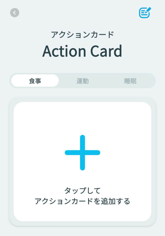 食事や運動、睡眠のアクションカードを設定できます。