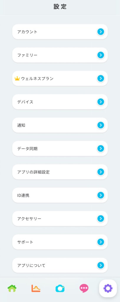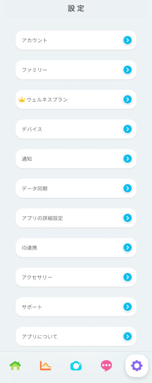 ファミリー情報やウェルネスプラン、デバイスなどを確認・変更できます。