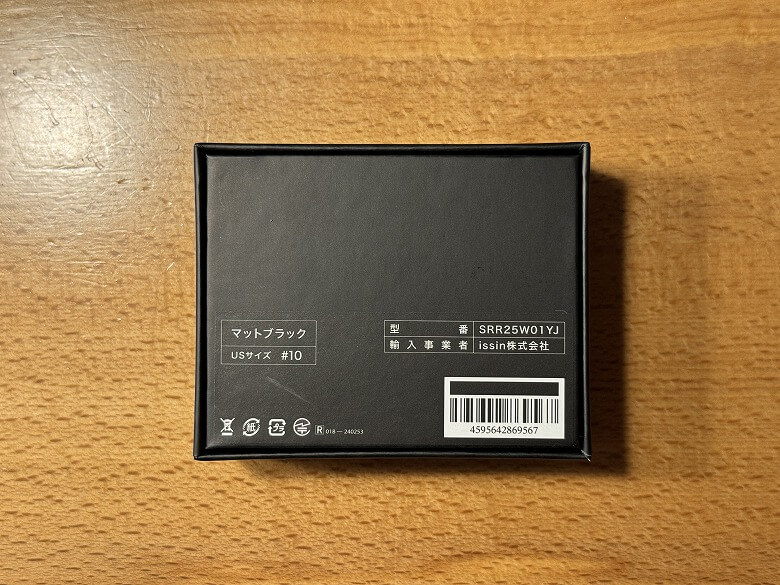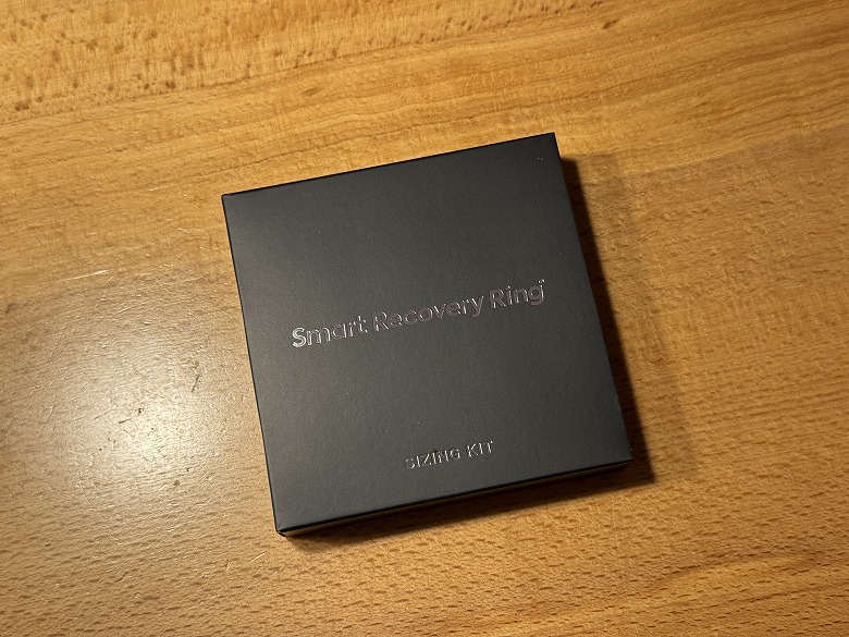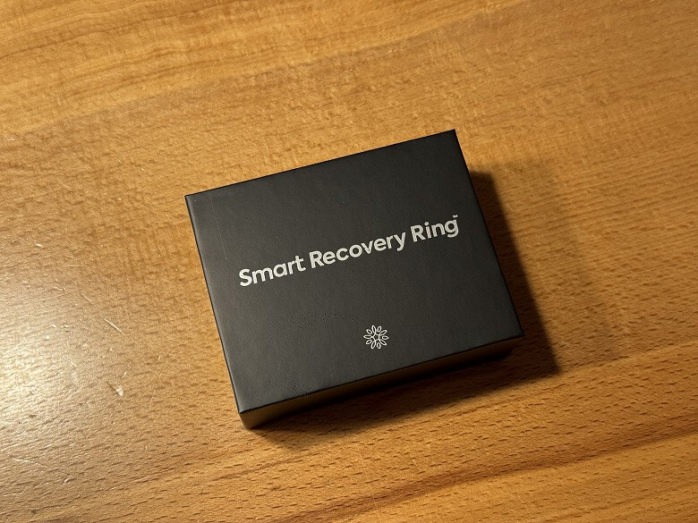 「Smart Recovery Ring」の外箱は、黒で統一されたシンプルなデザインです。