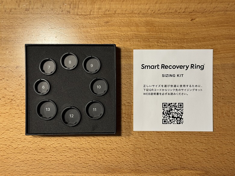 「Smart Recovery Ring」を購入する前に「サイジングキット」で注文するリングのサイズを確認します。