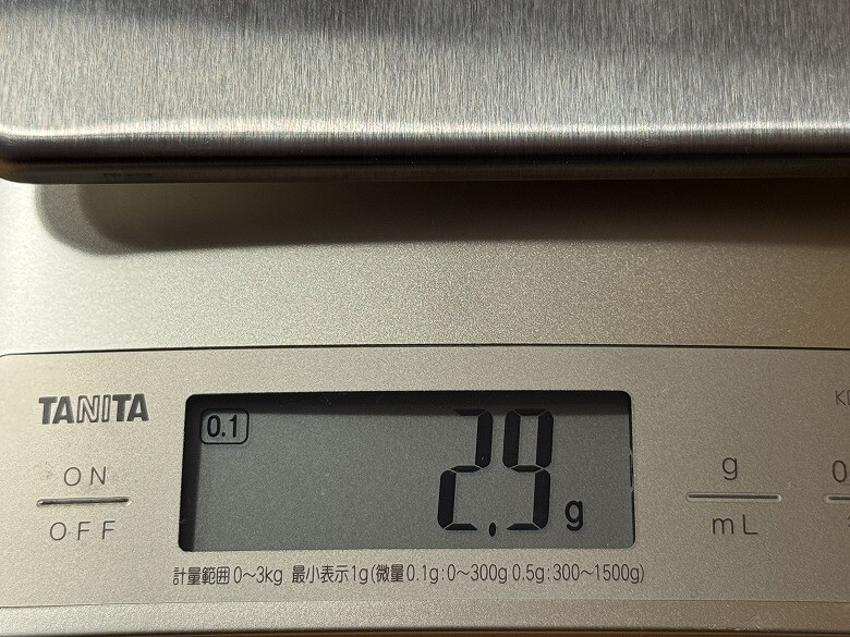 重さは充電ケースが27.2 g、リングは2.9 g(サイズ10)でした。