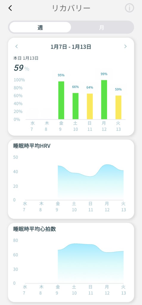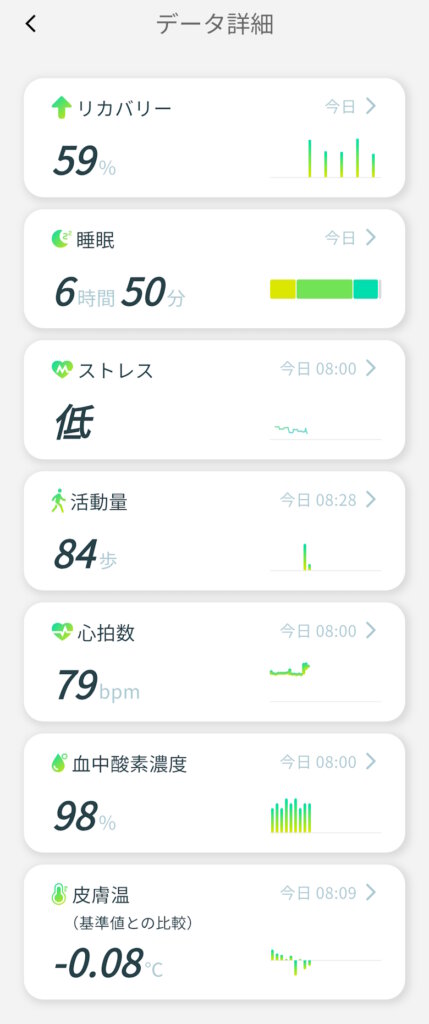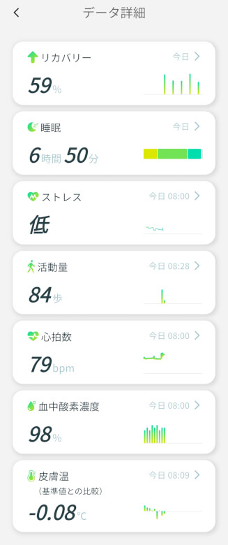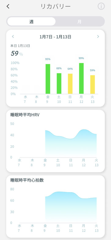 これまでのリカバリー値の推移や、データ詳細を確認できます。
