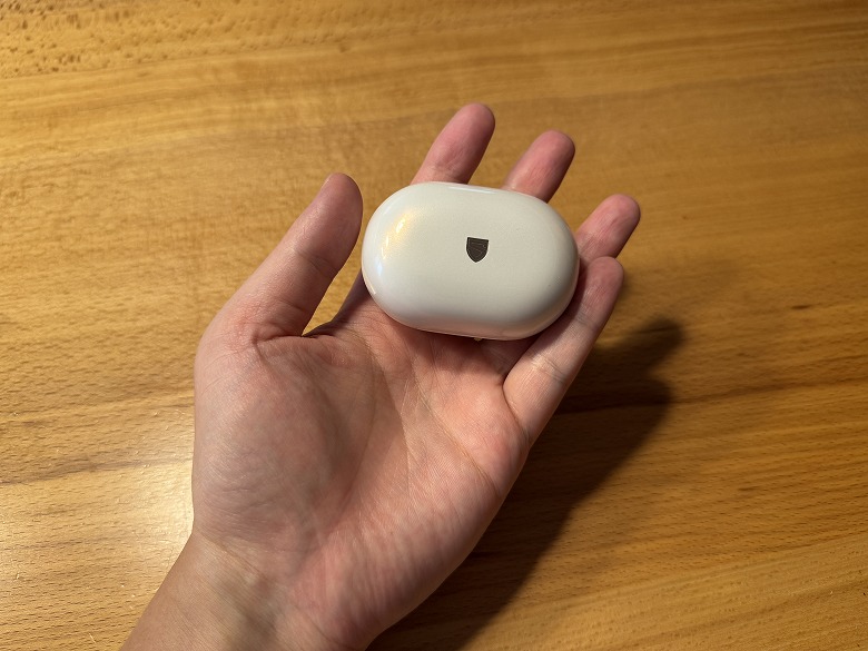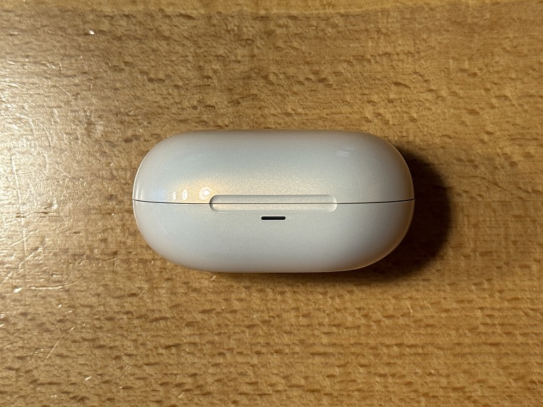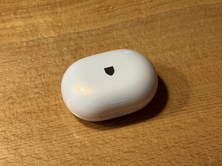 「SOUNDPEATS Clip1」の充電ケースはホワイトメタリックで、可愛くも高級感のデザインです。