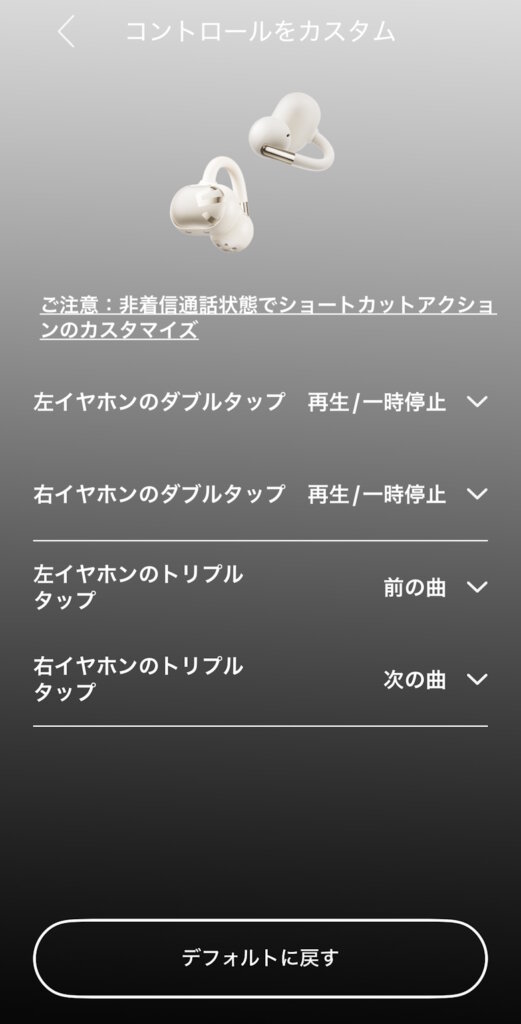 ジェスチャーも左右のイヤホンごとに設定できます。