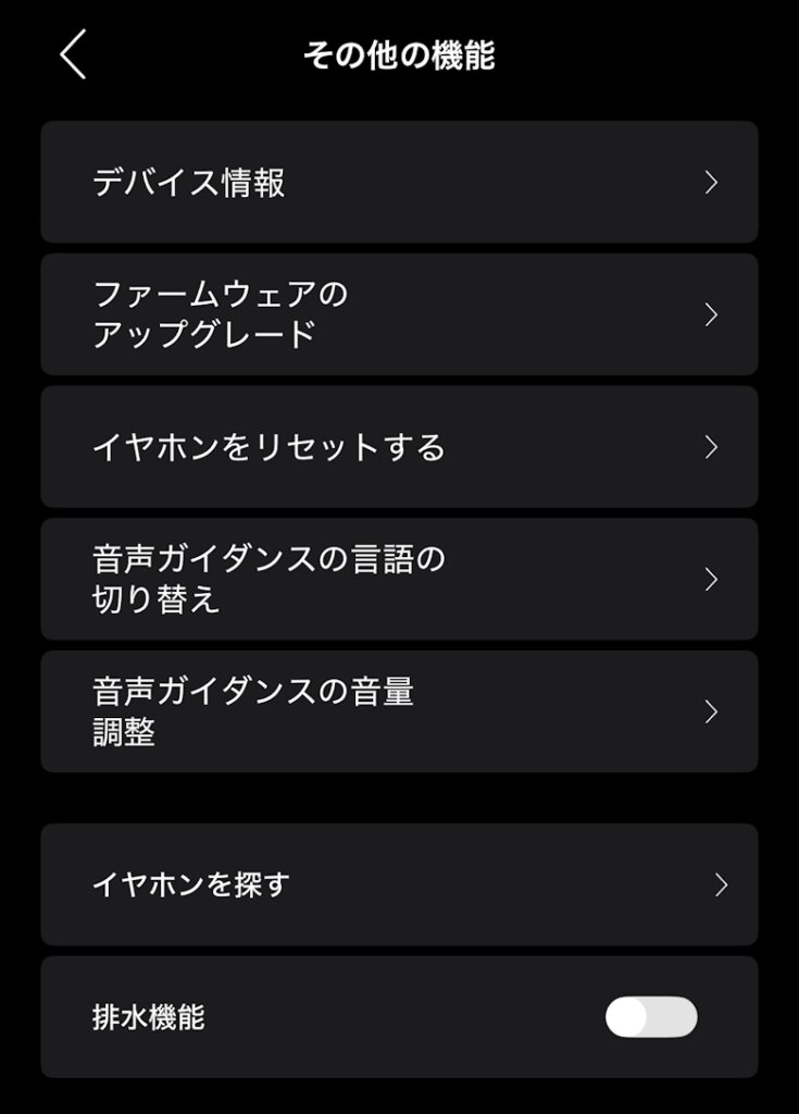 その他、イヤホンに関する様々な設定を確認・変更できます。