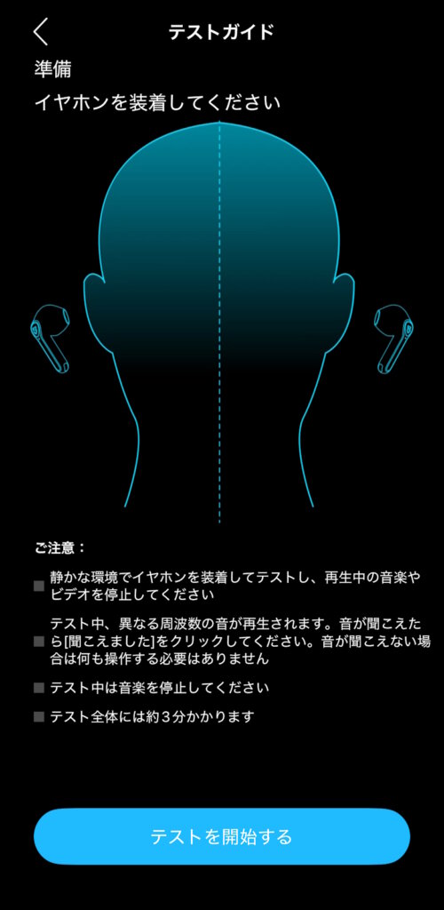 アダプティブイコライザーではテストに行い、その人にあわせたカスタマイズを自動で行ってくれます。