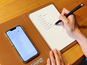 スマホ(iPhone 13 Pro)と比較するとこんな感じのサイズ感。