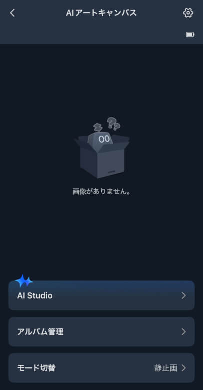 アルバム管理では作成した画像の閲覧や同期、モード切替ではスケジュールなどを設定できます。