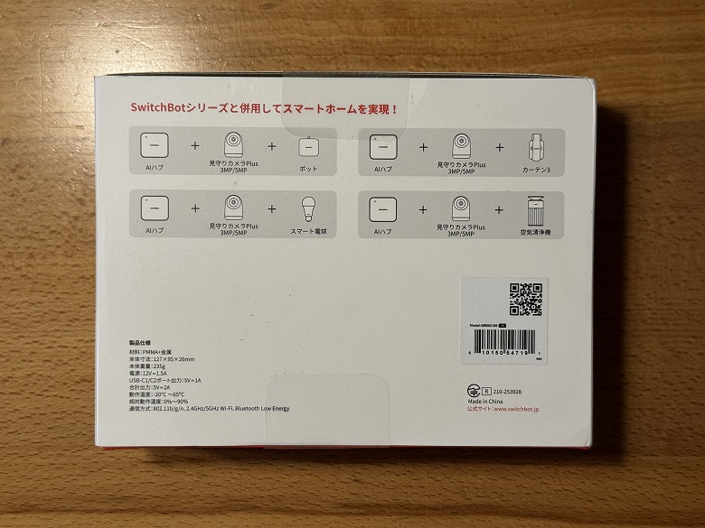 「SwitchBot AIハブ」の外箱は、白基調でシンプルなデザインです。