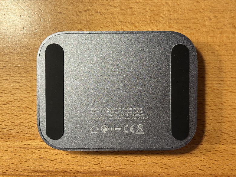 底面には滑り止めと製品の仕様が記載されています。