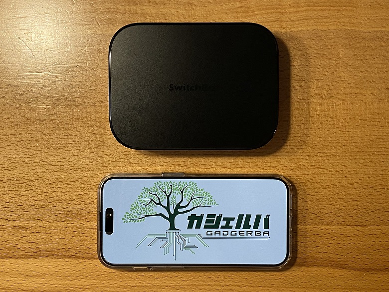 スマホ(iPhone 15 Pro)と比較するとこんな感じのサイズ感。